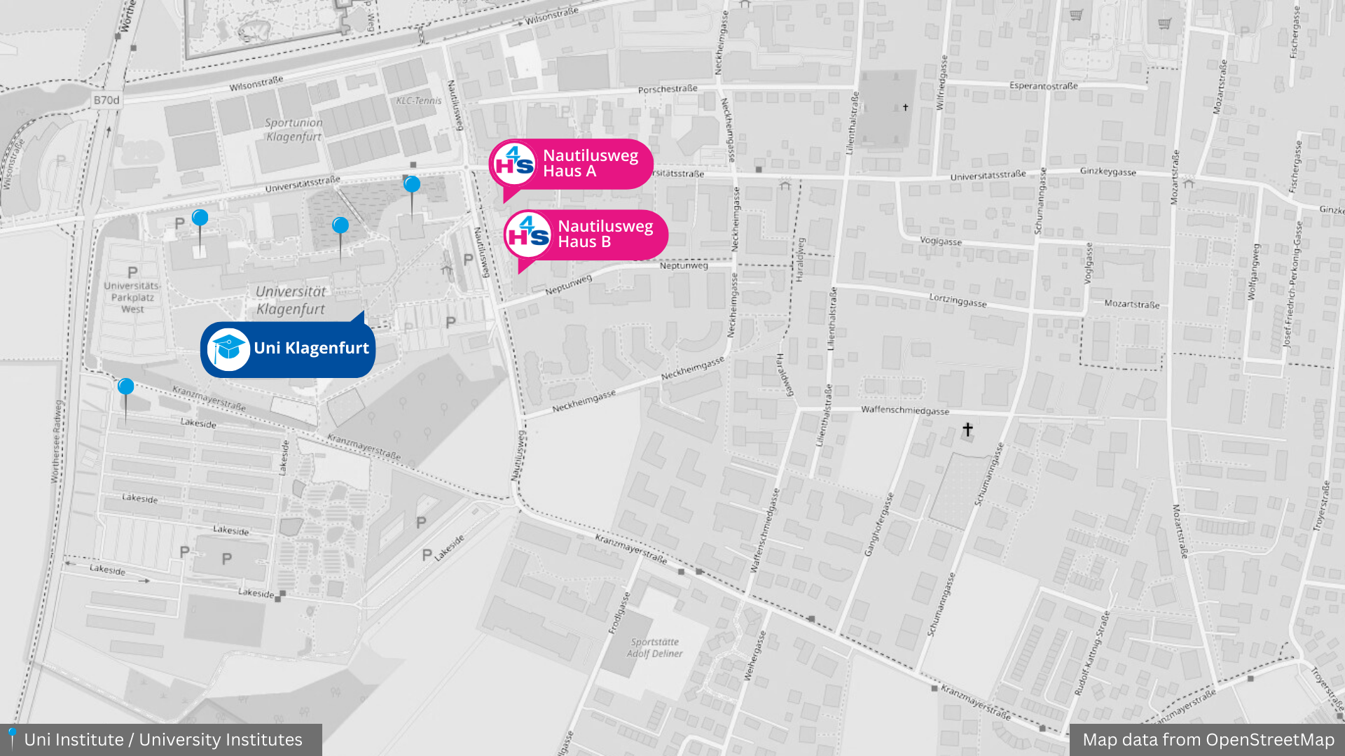 You know what's right opposite the dormitory? The University of Klagenfurt. Perfect for late risers and traffic-jam-haters.