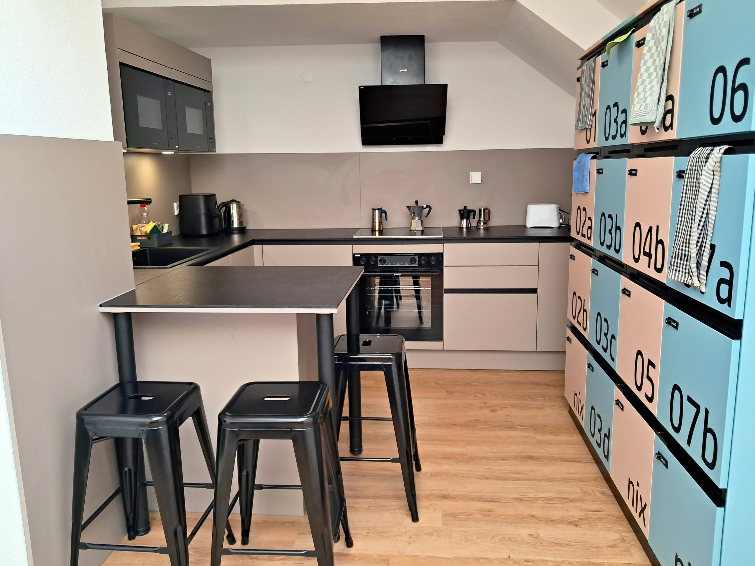 Gemeinschaftsküchen, teilweise absperrbare Küchenkästen und Kühlschränke mit elektronischem Schließsystem, Veranstaltungssaal mit Heimkinoausstattung, Fitnessraum, Waschmaschinen und Trockner, Fahrradkäfig, Skikeller, Dachterrasse, Innenhof mit Pergola, Tiefgarage, WLAN in Gemeinschaftsflächen, Tischfußballtisch, Getränke- und Kaffeeautomat, 24/7 Verleihservice (Staubsauger, Wischmopp, Küchengeräte ...) – alles da im Studentenheim Höttinger Au.